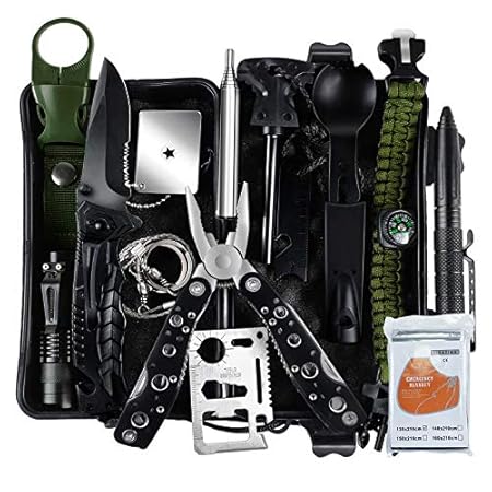 EILIKS Survival Gear Kit, Emergency EDC Survival Tools 24 in 1 SOS Earthquake Aid Equipment, Cool Top Gadgets Valentines Birthday Gifts for Men Dad Him Husband Boyfriend Teen Boy Camping Hiking