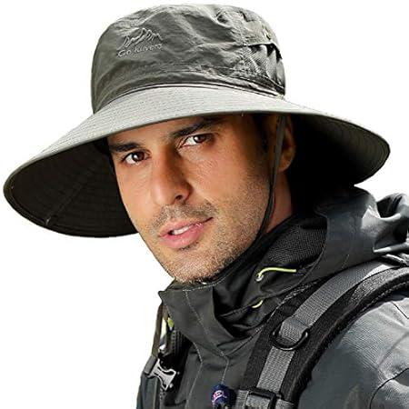 Wide Brim Fishing Sun Hat Men UPF50+ Breathable Boonie Safari Bucket Cap for Camping Gardening