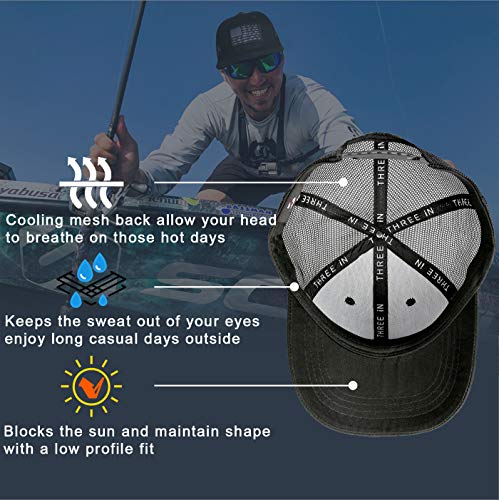 【Ventilated Back & Sweat Band】Classic American fishing hat, fitted design, this fishing hat blocks the sun and keeps the comfort of all day wearing, Cooling mesh back makes it very breathable. When you are fishing, mesh back fishing hat will allow your head to breathe on those hot days, allowing you to stay cooler. Built in a sweat band, keeps the sweat out of your eyes, so that you can enjoy long days out on the water to casual days outside.