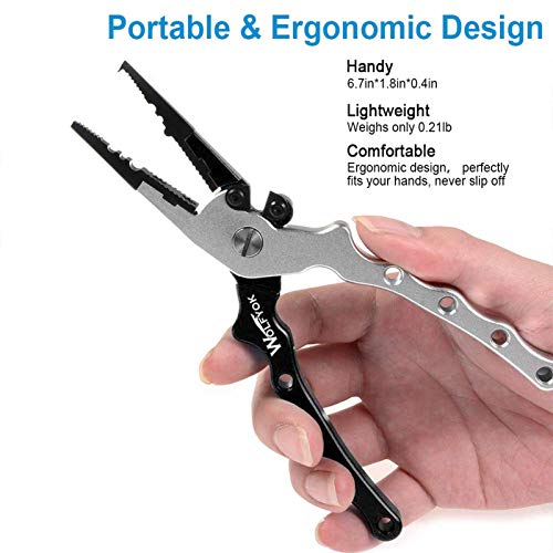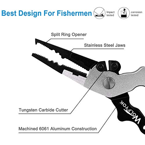【Aluminum and Corrosion Resistant】- Wolfyok Fishing Plier is made of Air-Craft Grade aluminum material for a great capability of saltwater resistance. No rust, no corrosion, best for freshwater and saltwater environment.