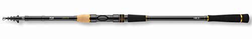 Daiwa Legalis Tele Spin, Telescopic allround rod. The Legalis Tele all-round rod series offers a range of short sectioned telescopic rods for fishing with float or ground rig. You can also use them very well for occasional spin fishing. Different lengths from 2.70m up and three different casting weights make it possible to choose the right rod for your needs. The Legalis tele rods are real all-rounder, which are, depending on the casting weight, suited for fishing for tench, bream, carp and trout as well as pike and zander. The twosectioned, long handle part is very well balanced and supports your casting performance. The semi-parabolic action of the HMC+ blank enables precise casts also over great distances and prevents unhooking during the fight. The priceperformane ratio of the Legalis Tele Allround rods is outstanding. HMC+ carbon fiber blank. Cork/EVA handle. CNC cut aluminum reel seat. Titanium oxide guides.