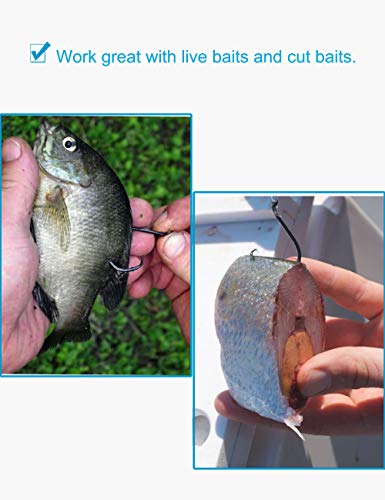 The unique design makes the hooks is perfect for various kinds of lures, especially live baits and cut baits. Great for catfish, yellow tail, bass, and other various fishes.