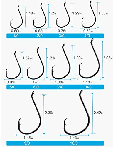 What You Get: Comes with 50pcs circle hooks. 10 Sizes (1/0, 2/0, 3/0, 4/0, 5/0, 6/0, 7/0, 8/0, 9/0, 10/0) available for you geared to different fishing conditions.