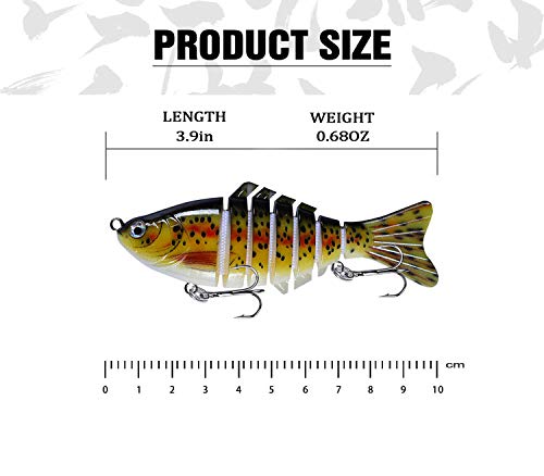 【Widely Fishing Species】This bass fishing lure can be widely used to catch bass, yellow perch, walleye, pike, muskie, roach, trout, snook. salmon etc. This swimbait is quite suitable for both saltwater and freshwater and functions well in all water layers.