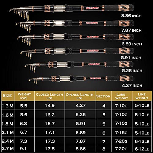🎣 PLUSINNO Telescopic Fishing Rod are constructed with High Density 24-Ton Carbon Fiber reinforced with Fiberglass Composite for power,elasticity and durability; The Welded Stainless Steel Guides with Ceramic Inserts for superior casting distance and accuracy while dissipating heat more efficiently which delivers excellent durability with monofilament, fluorocarbon and braided lines; The Exquisite Reel Seat Is Made of Corrosion Resistant CNC Machined Aluminum for a solid base and all-day.