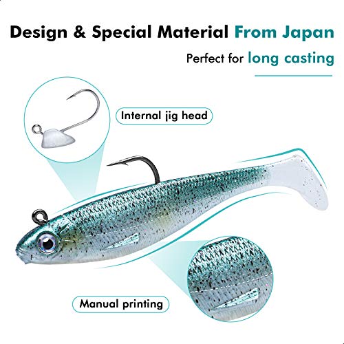 【WIDELY FISHING SPECIES】Using Japan material, the freshwater fishing lures is the perfect size at 3.5in, which ready to take on multiple hits. Whether you are fishing reefs, estuaries, rivers, fresh or saltwater, the Truscend lures for fishing will become your essential paddle tail lure to target bass, trout, Walleye, pike snook, salmon, redfish and many more.