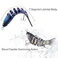 🐟 【Hard Lures & Sharp Hooks】This fishing lure is a multi-segmented swimbait comprised of 7 segments. The seven is constructed from solid plastics, and jointed with a mesh woven fabric. A multisection swimbait, is rated to withstand 40 Lbs of break strength, but as tested in real world scenarios, can withstand well over 100 Lbs.